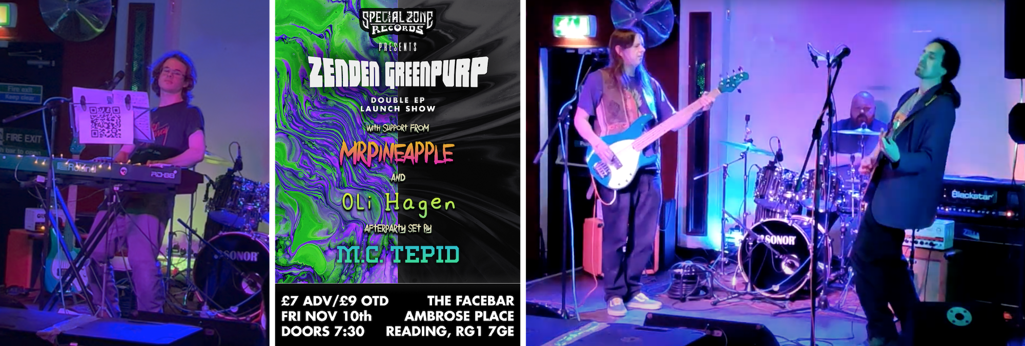 I first saw Mr Pineapple in late 2023, after sharing a bill with them in support of Zenden Greenpurp's debut full-band gig. At the time they were a three-piece comprised of lead singer, guitarist and songwriter Alex, bassist Colin, and drummer Chris. They performed a really fun set of interesting tunes, and I was instantly interested in being a part of it. We bumped into each other numerous times over the next year, with me getting a bunch of playing experience, and them getting a new and downright incredible drummer (George). By late 2024, Alex and I had both decided to give Mr Pineapple plus keys a go.